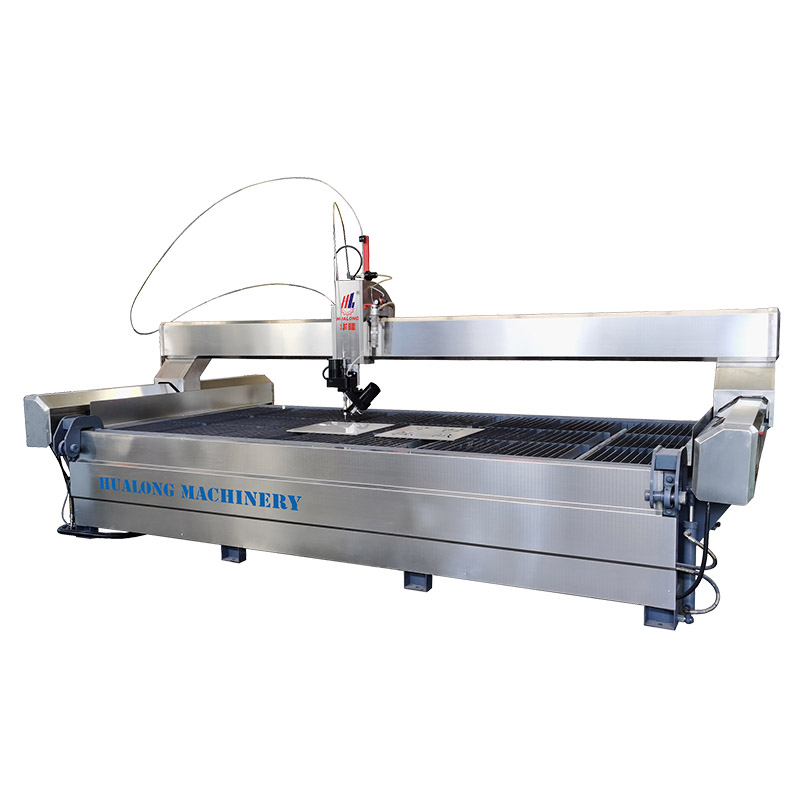 5軸水刀切割機專門用于切割大理石和花崗巖,可補償10°切割角度。它是一種坡口切割機。由于水刀切割是一種柔性切割方式,因此傳統(tǒng)三軸水刀切割機切割后的產(chǎn)品截面會有一定的傾斜度。為保證垂直切割斷面的精度,必須降低切割速度。而我們的5軸水刀切割機可以通過補償切割角度來保證垂直切割截面的精度,而不會降低切割速度。這樣就可以用來切割拼花石材,拼花地板不需要再打磨,省時省力。