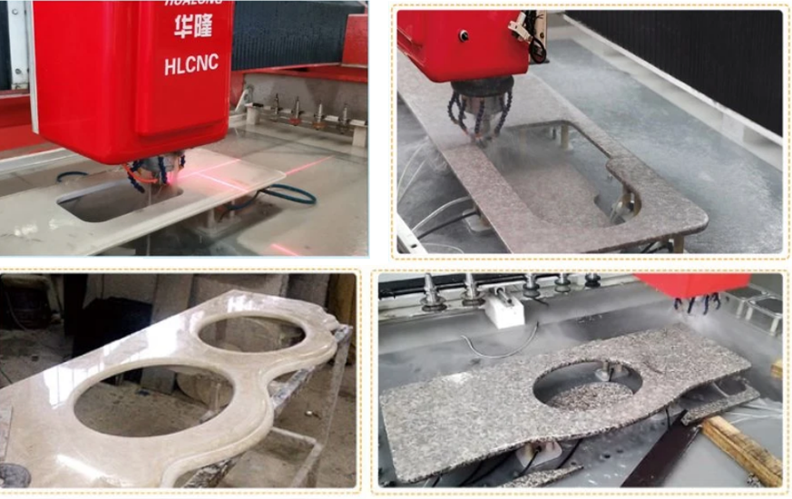 數(shù)控石材加工中心 : 是一個CNC銑削中心,設(shè)計用于輪廓加工、切削和車削,具有三個插補軸,為用戶提供了多種復(fù)雜加工操作的可能性。適用于加工各種石材臺面,如廚房臺面、浴室臺面、櫥柜臺面、吧臺、桌子、窗臺、門套等。浮雕像石頭背景墻浮雕,歐式包邊等也是可用的。